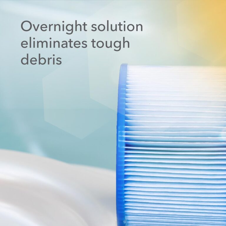 An overnight deep-cleaning solution for filters. Removes body oils, suntan lotion, grease and other organic material as well as scale and mineral buildup from filter media.