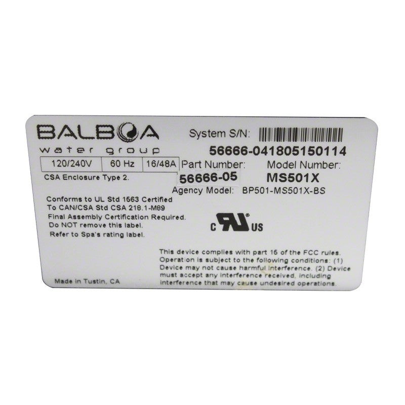 Master Spa - X300776 - Balboa Equipment MS 501X Hot Tub Control Pack.