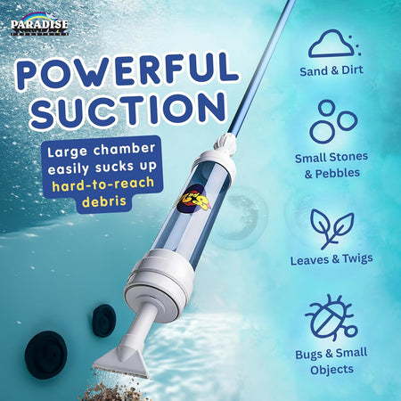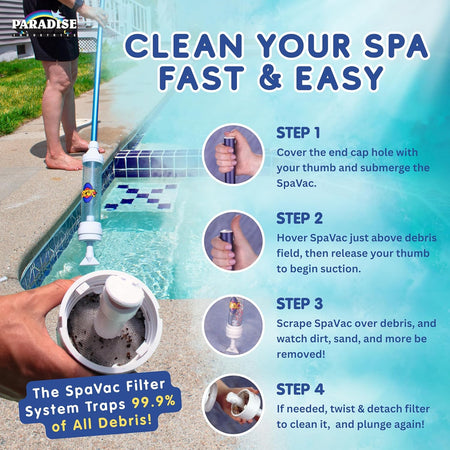 Keep your pool, hot tub, or swim spa crystal clear with the Paradise Spa Vac, the ultimate manual spa vacuum designed for easy debris removal without any cords, batteries, or hoses.